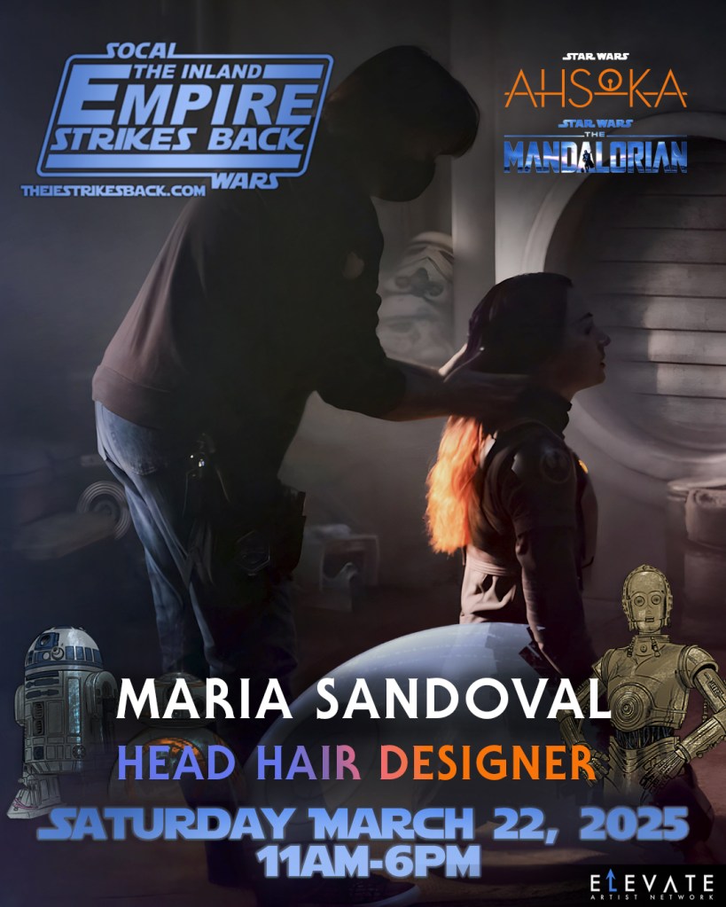 Come get your hair done by Maria, she will also have event exclusive hairpieces for sale, and will have a speeder that was used in Ahsoka available for pictures!