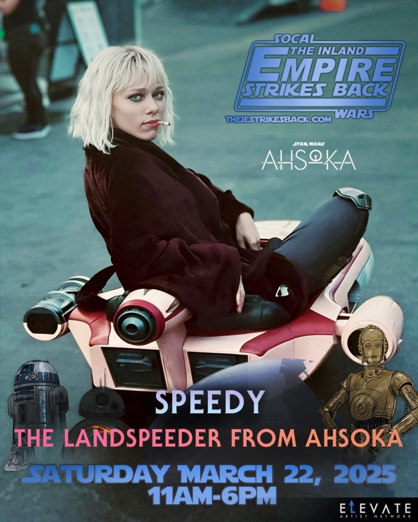 Capture an iconic moment with Speedy of @onlyspeederfans — the landspeeder that the whole cast from Ahsoka rode and SIGNED!